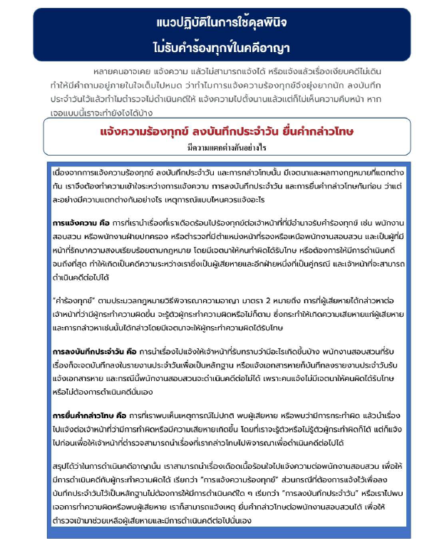 แนวปฏิบัติในการใช้ดุลยพินิจไม่รับคำร้องทุกข์ในคดีอาญา